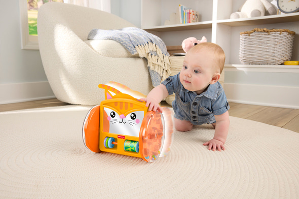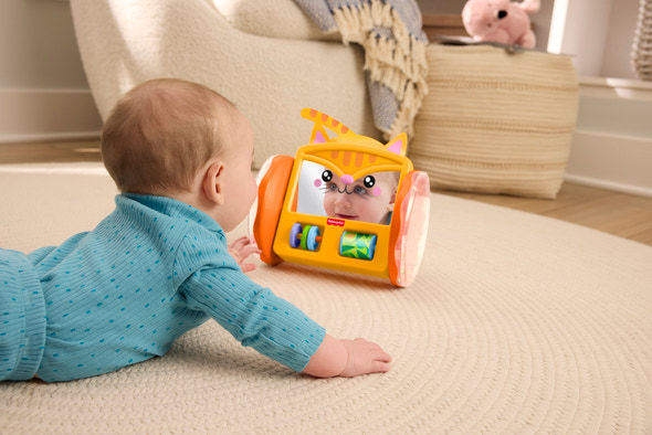 Fisher-Price Pet Crawl & Play Cat Mirror är den perfekta leksaken för att göra magläge och krypande extra spännande för de små. Denna färgglada katt-spegel är utformad för att fånga ditt barns uppmärksamhet med sitt söta kattansikte och många roliga detaljer. Spegeln hjälper ditt barn att utforska sin egen spegelbild, vilket stärker deras självmedvetenhet och nyfikenhet. När spegeln rullas fram och tillbaka aktiveras de färgglada pärlorna och de roterande trummorna, vilket stimulerar både syn och hörsel. Små händer kan greppa de olika elementen, vilket främjar finmotoriken och hand-öga-koordinationen. Kattens spegel är lätt att skjuta och rulla, vilket motiverar ditt barn att röra sig och stärker de stora muskelgrupperna. Den robusta designen gör den säker även för de yngsta barnen att leka med, och de glada färgerna och formerna gör den till en hit i alla lekmöjligheter. Fisher-Price Pet Crawl & Play Cat Mirror är perfekt för att stödja ditt barns utveckling genom lek och rörelse.