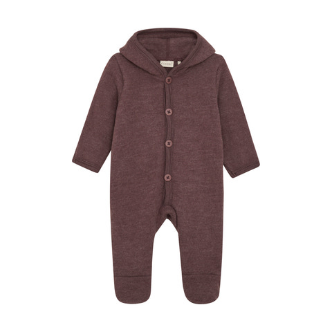 Mysig babyoverall tillverkad i mysig ull för en varm och gosig känsla! Knäppning fram för att enkel av-och påklädning. Overallen är även utrustad med en mysig luva. Kommer i strl. 56-74.