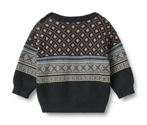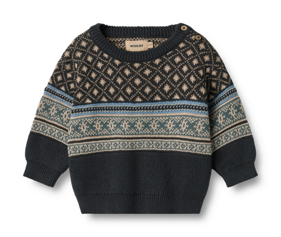 Långärmad stickad pullover i mjuk ekologisk bomull för din baby. Wheats stickade plagg är en riktig klassiker under de kalla höst- och vintermånaderna, eftersom de är mjuka och bekväma för ditt barn att bära. Vår stickning har ett klassiskt utseende med en avslappnad passform som gör det enkelt att styla med ett par byxor eller över en klänning, beroende på väder och tillfälle.