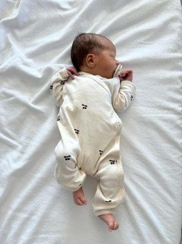 Mjuk jumpsuit i 95 % ekologisk bomull och 5 % elastan med lite stretch. Tryckknappar längs sidan och i grenen gör det enkelt att dra på overallen på ditt barn. Designad med vågiga kanter. GOTS, ekologisk, certifierad av CU1094701.