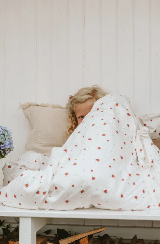 100 % ekologisk satinbomull OEKO-TEX® STANDARD 100. Junior 100 x 130 cm (påslakan) – 38 x 55 cm (örngott) Det mjuka påslakanet stängs elegant med klassiska band.