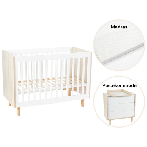 Sovtid: Från början används Karls spjälsäng med basen i mitten så att den inte ligger för långt ner för barnet. När barnet växer och kan börja sitta upp rekommenderas att basen sänks så att barnet inte kan rulla av och alla kan sova tryggt och gott. När barnet blir lite större kan botten sänkas ytterligare ett steg så att den är helt nere, och detta är en lämplig nivå tills sängen inte längre behövs. Sängen har en vacker, enkel design med en touch av stil, vilket gör den perfekt för ett litet barnrum.