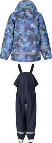 Kaspar Rain Set från ZIG ZAG är det perfekta valet för aktiva barn som älskar att leka utomhus – oavsett väder. Setet består av en snygg regnjacka med huva och ett par praktiska regnbyxor med justerbara hängslen, som garanterar god passform och komfort hela dagen. Jackan har ett vackert marinblått mönster som ger den ett modernt och fräscht utseende, medan byxorna är enfärgade och lätta att kombinera med resten av garderoben. Båda plaggen är försedda med reflekterande detaljer som ökar barnets synlighet i trafiken och på lekplatsen när det är mörkt eller grått ute. Materialet är vattentätt och slitstarkt, så ditt barn kan hoppa i pölar och leka utan att bli blött. Setet är lätt att ta på och av, och elastiska muddar vid ärmslut och benslut ser till att vatten och vind hålls ute.