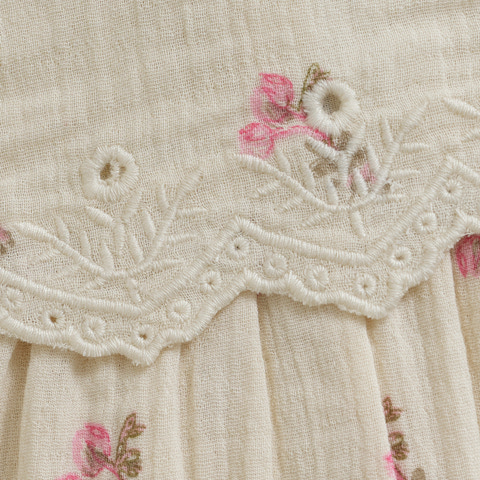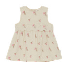Denna söta klänning från Minymo med ”White Swan”-tryck är perfekt både för vardagsbruk och festliga tillfällen. Klänningen har ett bedårande blommönster i delikata rosa nyanser, vilket ger den en romantisk och klassisk look. Den fina broderade kanten under bysten ger en extra feminin touch, medan den ärmlösa designen gör klänningen lätt och luftig – perfekt för varma sommardagar. Klänningen är tillverkad i ett mjukt och bekvämt material som garanterar ditt barns komfort. Med den praktiska knäppningen i nacken är klänningen lätt att ta på och av, vilket gör den både funktionell och snygg.
