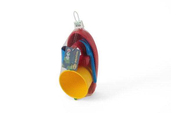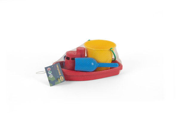 Det klassiska återvunna röda båtsetet i nät från DanToy är det perfekta setet för rolig och kreativ lek utomhus. Med en båt, en hink, en spade och en kratta kan ditt barn låta fantasin flöda i sandlådan, bygga slott på stranden eller segla båten i badkaret. Kombinationen av vatten och sand öppnar upp oändliga möjligheter för lek, där barnen kan gräva, fylla, hälla och skapa små berättelser längs vägen. Det är perfekt för både sandlådan och stranden, där barnen kan bygga, gräva och segla båten i sand och vatten. Setet levereras i ett praktiskt nät, vilket gör det enkelt att ta med på resor och hålla reda på delarna. Setet är lätt att rengöra och tål mycket lek, så det kan användas om och om igen. Med det återvunna båtsetet Classic får du en klassisk leksak som ger glädje och lärande för både små och större barn.