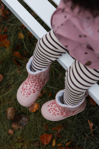 Termo gummistövlar i ankellängd är praktiska och vattentäta termostövlar som är tillverkade av 100 % naturgummi på både ovandel och yttersula. De har ett varmt foder av 80 % ull och 20 % polyester för komfort. Nylon dragkedjan gör det enkelt att ta av och på stövlarna. Perfekt för utomhuslek på våta och kalla dagar.