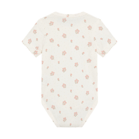 Den kortärmade bodyn från Minymo i Vanilla Ice är ett måste för de små. Bodyn är tillverkad i ett mjukt och bekvämt material som känns skönt mot barnets hud och garanterar optimal rörelsefrihet hela dagen. Det fina trycket med små blommor ger den en söt och charmig look som passar perfekt både till vardags och fest. Bodyn har praktiska tryckknappar i nederkant, vilket gör det snabbt och enkelt att byta blöja, och den runda halsen säkerställer en bra passform utan att sitta för tight. Den är idealisk som basplagg under andra kläder eller på egen hand under varma dagar.