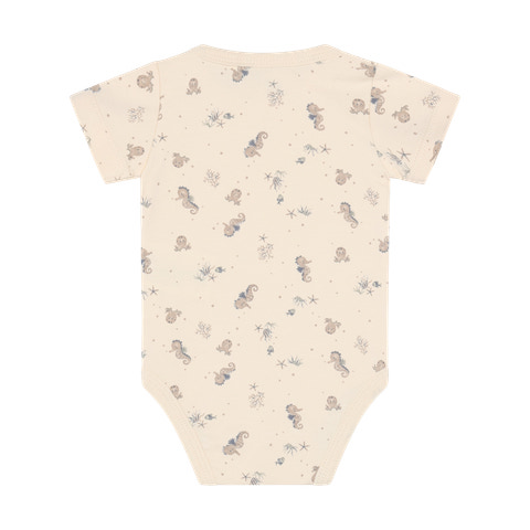 Söt sommarset från BeKids. Setet är tillverkat av en mjuk bomullsblandning och består av en bodysuit med heltäckande tryck och enfärgade shorts. Bodysuiten knäpps med tryckknappar på axeln och mellan benen, och shortsen har en elastisk midja för en bekväm passform.