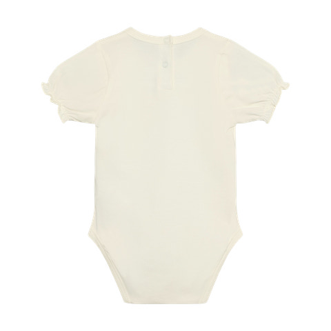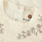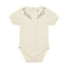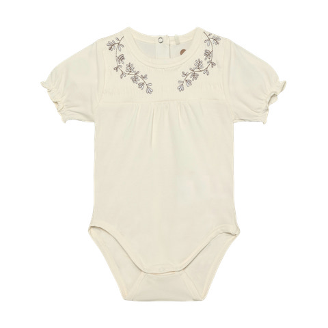 Den kortärmade broderade bodyn från En Fant är ett elegant och bekvämt val för de små. Bodyn är designad med bedårande broderier runt halsringningen, vilket ger den en romantisk och klassisk look. De korta ärmarna har små volangdetaljer som ger den enkla designen en extra touch. Den mjuka och bekväma kvaliteten gör att ditt barn kan röra sig fritt och bekvämt hela dagen lång. Bodyn har tryckknappar vid halsen och nederkant, vilket gör det snabbt och enkelt att klä på och av ditt barn och byta blöjor. Den ljusa färgen Eggnog passar både till vardags och festliga tillfällen och kan enkelt kombineras med byxor, leggings eller kjol.
