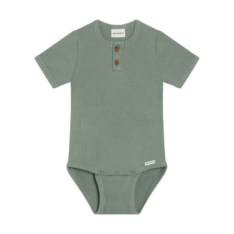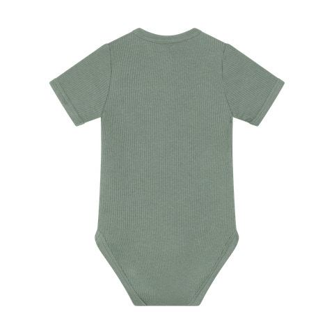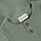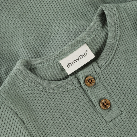 Den kortärmade Rib Bodysuit från Minymo i Lily Pad är ett utmärkt val för de små. Bodysuiten är tillverkad i ett mjukt och stretchigt ribbat tyg som garanterar maximal komfort och rörelsefrihet för ditt barn. Den har korta ärmar, vilket gör den idealisk för de varmare månaderna eller som ett lager under andra kläder. Det finns söta träknappar vid halsen, som både dekorerar och gör det enkelt att dra bodyn över huvudet. Längst ner finns praktiska tryckknappar som gör det snabbt och enkelt att byta blöja. Den diskreta Minymo-etiketten på framsidan ger den ett modernt och stilrent utseende. Bodyn är designad med fokus på både funktionalitet och estetik, så den passar perfekt i alla garderober. Den ribbade strukturen ger den ett vackert och klassiskt utseende.