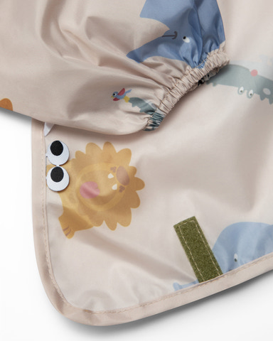 NOUI NOUI Långärmad BLW-haklapp i beige är den perfekta lösningen för måltider och kreativa stunder där det ska finnas utrymme för lite extra kul – utan att kläderna blir smutsiga. Haklappen har långa ärmar som skyddar både armar och överkropp, och det mjuka, lätta materialet gör den bekväm för barnet att ha på sig. Det söta djurmönstret gör haklappen extra tilltalande för de små, och den praktiska knäppningen i nacken ser till att den sitter på plats. Med den medföljande förvaringspåsen kan du enkelt ta med dig haklappen när du är på språng, och de extra tillbehören gör det ännu enklare att hålla koll på måltiderna.