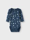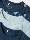 Komplettera din garderob med detta fina 3-pack långärmade bodysuits från NAME IT i mörk denim. Paketet innehåller tre olika mönster: en enfärgad mörkblå, en med ett sött rymdtryck och en i en ljusblå nyans. Bodysuitsen är tillverkade av mjuka och andningsbara material som garanterar maximal komfort för ditt barn hela dagen lång. De praktiska tryckknapparna i nederkanten gör det enkelt att byta blöja, och den elastiska halsringningen gör det snabbt och enkelt att klä på barnet. Perfekt för både lek och vila, och ett måste i varje barns garderob.