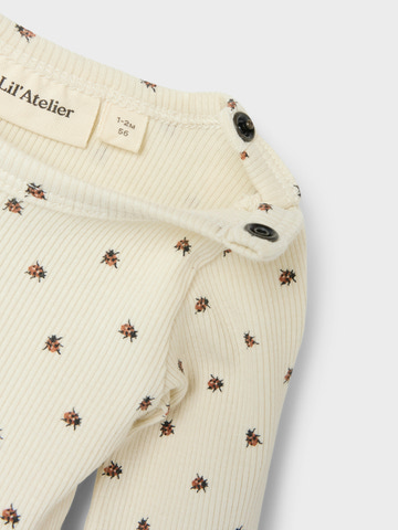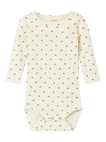 Lago slim body noos från Lil' Atelier är ett fantastiskt basplagg för garderoben som kombinerar komfort och stil. Bodyn är tillverkad av mjuk bomull som känns skön mot barnets hud och garanterar god rörlighet hela dagen. Den smala passformen gör att bodyn sitter snyggt och följer barnets rörelser, medan de långa ärmarna ger extra värme på kyliga dagar. Det fina blommönstret i en ljus turturduvsfärg ger en söt och tidlös look. Tryckknappar i nederkanten gör det enkelt och snabbt att byta blöja och klä på barnet. En idealisk bodysuit för både vardagsbruk och festliga tillfällen.
