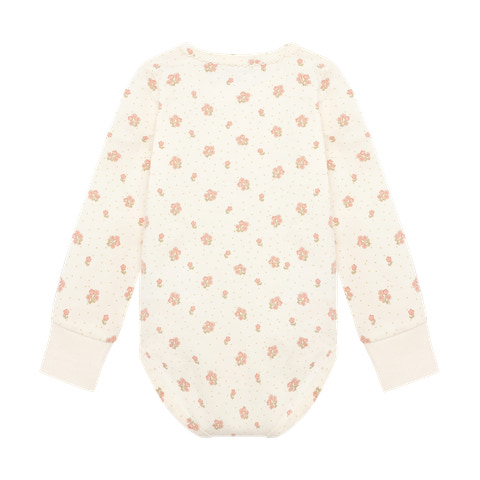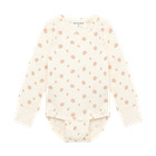 Den långärmade bodyn med tryck från Minymo är ett utmärkt val för de allra minsta. Bodyn är tillverkad i ett mjukt och stretchigt material som garanterar optimal komfort för barnet hela dagen. Det söta trycket ger ett charmigt och lekfullt intryck som passar perfekt både till vardags och vid festliga tillfällen. De långa ärmarna skyddar mot kyla, och de mjuka ribbkanterna vid handlederna säkerställer en bra passform utan att sitta åt. Bodyn har praktisk tryckknappsöppning mellan benen, vilket gör det enkelt och snabbt att byta blöja. Den runda halsringningen gör det lätt att ta av och på bodyn, och den goda passformen ger barnet frihet att röra sig.