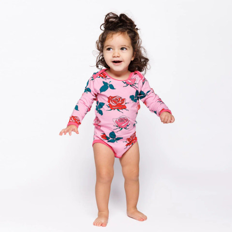 Blomstra i skönhet med vårt tryck av vackra rosa och röda rosor, som ger en touch av elegans till alla outfits. Småfolks tryck är designade med fokus på glada färger, detaljer och berättelser. Våra bodysuits är ett utmärkt sätt att ge ditt barns garderob personlighet, samtidigt som de håller barnet bekvämt hela dagen.