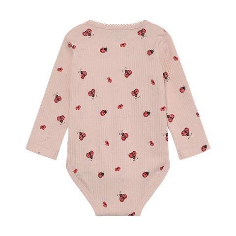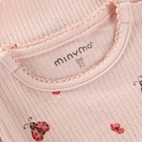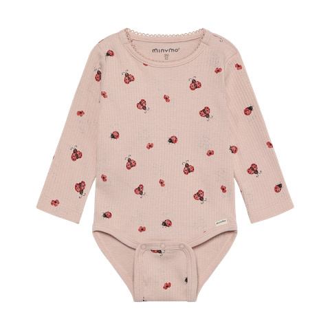 Den långärmade ribbade bodyn med tryck från Minymo i färgen Peach Whip är ett fantastiskt val för de små. Den mjuka ribbade strukturen gör att bodyn är skön mot barnets hud och ger god rörelsefrihet. Det fina nyckelpigetrycket ger en lekfull och söt touch som passar både till vardags och fest. Bodyn har praktiska tryckknappar i nederkant, vilket gör det snabbt och enkelt att byta blöja. Den långärmade designen skyddar barnets armar och är idealisk för övergångsperioder eller som ett extra lager under kläderna. Minymo är känt för sitt fokus på kvalitet och funktionalitet, så du kan tryggt välja denna bodyn till ditt barn.