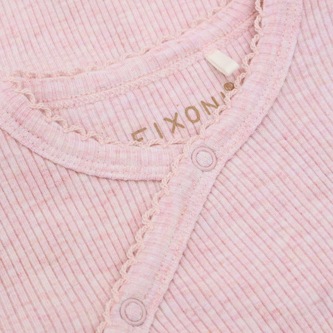 Fixonis långärmad bodys med melange-ribb är det perfekta valet för de små. Den är tillverkad i ett mjukt, ribbat tyg som känns skönt mot barnets hud och ger extra komfort hela dagen. Öppningen med tryckknappar på sidan och i grenen gör det enkelt att klä på och av barnet, medan den långärmade designen ger extra värme och skydd. En praktisk och snygg bodysuit som snabbt kommer att bli en favorit i din garderob!