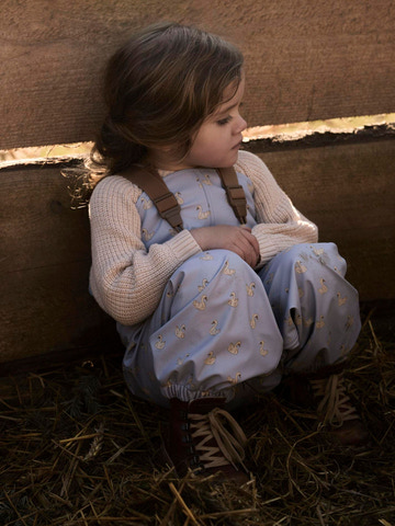 Ladry10 regnsett med tryck från Lil' Atelier är det perfekta valet för små barn som älskar att leka utomhus – oavsett väder. Regnsettet består av en jacka och byxor, båda dekorerade med ett charmigt tryck som gör det extra roligt att ha på sig. Jackan har en avtagbar huva, vilket ger flexibilitet och extra skydd när det regnar. De rymliga fickorna på jackan är perfekta för små skatter, och resår i ärmslut och byxben ser till att regnet hålls ute. Byxorna har justerbara fotremmar så att de sitter på plats även när barnet är aktivt. Materialet är både vattentätt och vindtätt, vilket gör setet lämpligt för både regniga och blåsiga dagar. Regnsettet är lätt och bekvämt, så att ditt barn kan röra sig fritt och leka utan begränsningar. Det är lätt att rengöra och tål många utomhusäventyr. Med Ladry10 regnsett är ditt barn redo att utforska naturen – oavsett om det är på lekplatsen, i skogen eller på väg till förskolan.