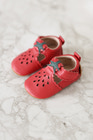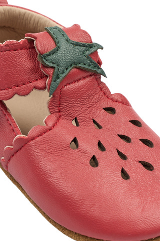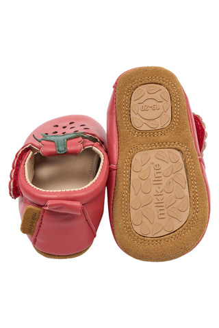 Lära-gå-skor Läder Sandal 3D-Jordgubbe från Mikk-Line är ett charmigt val för små barn som ska börja utforska världen på egna ben. Skorna är tillverkade i mjuk mocka och har en flexibel gummisula som ger bra stöd och komfort. Den lekfulla jordgubbsdesignen med 3D-detaljer gör dem extra attraktiva för barn, samtidigt som kardborreknäppningen gör dem enkla att ta på och av. Den halkfria sulan bidrar till trygghet när barnet tar sina första steg, och skorna passar lika bra inomhus som utomhus. Ett perfekt val för små fötter som behöver både skydd och frihet att röra sig.