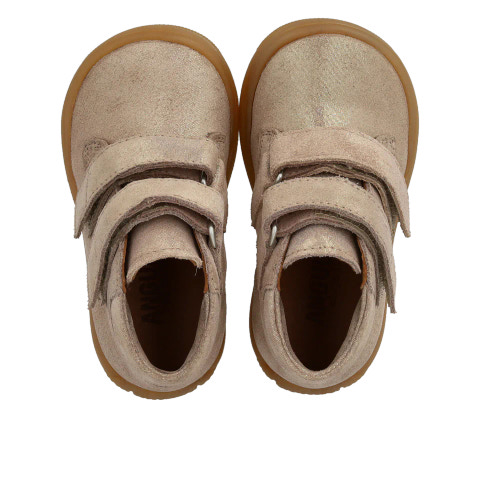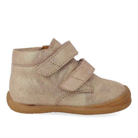 Ultramjuk sko i mocka med kardborreband, speciellt utformad för optimal stöd, stabilitet och flexibilitet för de allra första stegen.