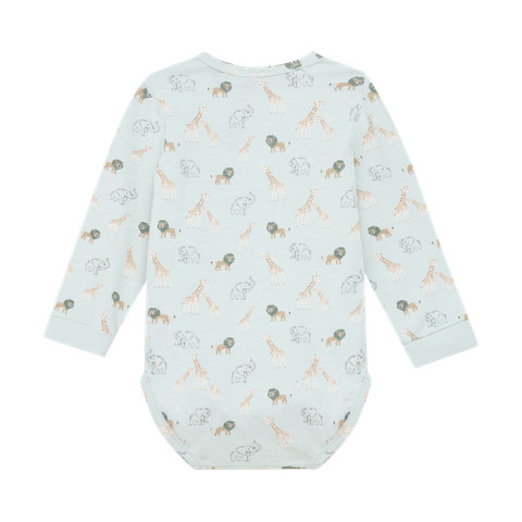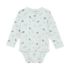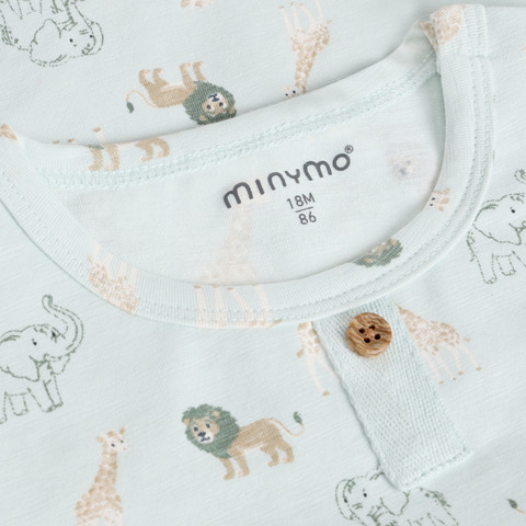 Minymo långärmad bodysuit med tryck i Sprout Green är ett fantastiskt val för de allra minsta. Bodysuiten har ett charmigt tryck med små djur, vilket gör den extra söt och inbjudande. Den är designad med långa ärmar som ger värme och skydd, vilket gör den idealisk både som vardagsklädsel och under ytterkläder. Bodyn har praktiska tryckknappar vid axeln och nederkant, vilket gör det snabbt och enkelt att klä på och av ditt barn – särskilt när du byter blöjor. Materialet är mjukt och stretchigt, så att ditt barn kan röra sig fritt och bekvämt hela dagen. Den vackra gröna nyansen och de söta motiven gör bodyn till ett populärt val i garderoben, och den kan enkelt kombineras med byxor, leggings eller en liten kjol. Bodyn passar både pojkar och flickor och är ett självklart val både för vardagsbruk och som present till nyblivna föräldrar.