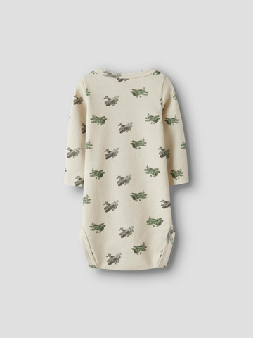 Layo Geu Långärmad Slim Body från Lil' Atelier är ett perfekt val för små äventyrare. Den är tillverkad i en mjuk och stretchig blandning av ekologisk bomull, lyocell och elastan, vilket gör den extra skön mot barnets hud. Den slimma passformen ger en smidig siluett och gör bodyn enkel att bära under andra plagg. Med långärmad design håller den värmen under kyligare dagar, samtidigt som tryckknapparna i grenen gör blöjbyten snabba och smidiga. Den charmiga printen med gröna flygplan på den ljusa kokosmjölksfärgade bakgrunden ger ett lekfullt och stilrent intryck.