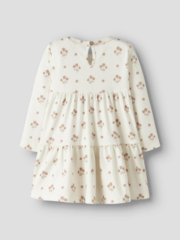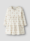 Layo Sif Klänning från Lil' Atelier är en charmig och tidlös klänning i färgen Coconut Milk, dekorerad med ett vackert blommönster. Klänningen är tillverkad i mjuk bomull som känns skön mot huden och har en långärmad design som passar perfekt för svalare dagar. Den har en fin volangkjol och en praktisk knapp i nacken som gör det enkelt att ta av och på plagget. Klänningen är lika fin till vardags som till festliga tillfällen och ger en klassisk look till ditt barn. Den är lätt att matcha med strumpbyxor eller leggings för en komplett outfit.