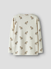 Layo Sio Tröja från Lil' Atelier är en charmig långärmad tröja i färgen Coconut Milk, dekorerad med ett lekfullt åsnemönster. Tröjan är tillverkad av en mjuk blandning av ekologisk bomull, lyocell och elastan, vilket ger en behaglig känsla mot huden och bra rörelsefrihet. Den har en praktisk knappslå framtill och en liten bröstficka som extra detalj. Passar lika bra till vardags som till finare tillfällen och är ett hållbart val för barnets garderob.