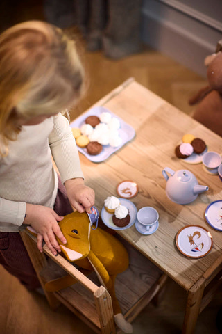 Barn älskar att ordna tebjudningar! Med detta charmiga teset från FILIBABBA kan de små bjuda in sina nallar, dockor eller till och med mamma och pappa att vara med och ha kul. Setet är utformat för att inspirera till fantasifulla rollspel och väcker klassiska lekar till liv, samtidigt som det främjar kreativitet och sociala färdigheter.