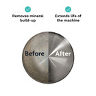 Lägg en tablett i vattentanken, starta rengöringsprogrammet och skölj sedan med rent vatten. Regelbunden användning förhindrar kalkavlagringar, skyddar värmeelement och sensorer och förlänger apparatens livslängd.