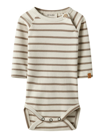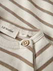Limia långärmad bodysuit från Lil' Atelier är ett utmärkt val för vardagsbruk. Den mjuka bomullen garanterar komfort hela dagen, och det tidlösa randiga mönstret i färgen Turtledove passar både flickor och pojkar. Bodyn har långa ärmar som ger extra värme på kyliga dagar, och de praktiska tryckknapparna i nederkanten gör det enkelt att byta blöja. En fin knappdetalj på axeln ger den enkla designen en extra touch. Bodyn är perfekt att kombinera med andra plagg och kan bäras separat eller under andra kläder, så att ditt barn alltid är bekvämt och snyggt klätt.