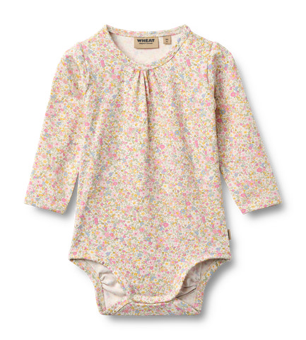 Liv Långärmad Body från Wheat är en underbar body i mjuk bomullsjersey med ett charmigt blommönster i ljusa färger. Den är tillverkad av 95% bomull och 5% elastan, vilket ger en skön stretch och gör plagget extra bekvämt för ditt barn. Tryckknappar vid axeln och i grenen gör det enkelt att klä på och av, samtidigt som den långärmade modellen passar lika bra under kyliga dagar som ensam på sommaren. Perfekt för både lek och vila, och ett måste i barnens basgarderob. Wheat står för kvalitet och omtanke, vilket märks i varje detalj.