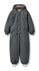 Denna overall har en tjockare vintervaddering som gör den varm även under de kallaste och blötaste vinterdagarna. Vinteroverallen är tillverkad i andningsbart polyuretan (PU)-material och är därför ganska unik, eftersom den håller ditt barn både torrt och varmt samtidigt.