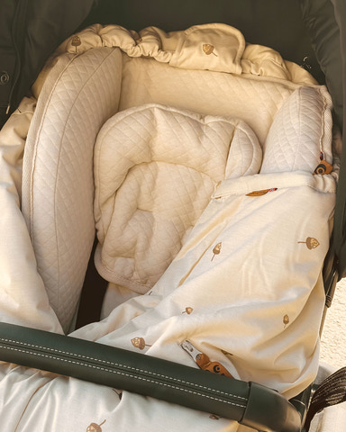 Åkpåsen är tillverkad av återvunna material och ekologisk bambuviskos. Den kan förlängas och har därmed lång livslängd.