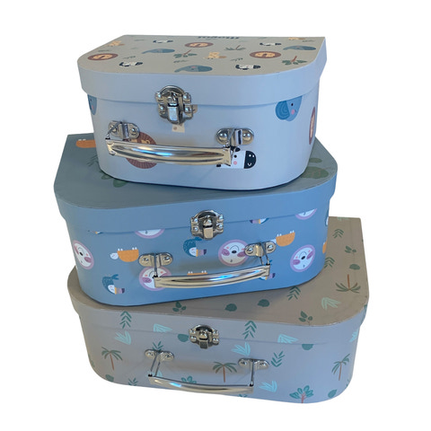 Magni Magical Play Suitcase är en charmig uppsättning av tre resväskor som sprider glädje och ordning i barnrummet. Varje resväska har sin egen unika design med söta djurmotiv och naturmotiv som inspirerar till lek och äventyr. De robusta metallhandtagen och låsen gör det enkelt för barn att öppna och stänga resväskorna, och de olika storlekarna gör att de kan sortera och förvara allt från leksaker till hemliga skatter. Resväskorna kan staplas, vilket sparar plats och dessutom ser snyggt ut i rummet. De är lätta och enkla att ta med sig på resan, så att ditt barn alltid kan ha sina favoritgrejer med sig. Ett perfekt val för både lek och förvaring, som skapar magi i vardagen.