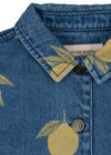 Magot Jacket från Konges Sløjd är en charmig och modern jeansjacka för barn som kombinerar klassisk design med en lekfull twist. Jackan är tillverkad av mjukt och slitstarkt denim, dekorerad med ett fräscht citrontryck som ger den en somrig och glad look. Den har två rymliga framfickor, perfekta för små skatter och nyfikna händer, samt en knäppning i full längd som gör det enkelt för barn att ta på och av jackan själva. Den tidlösa kragen och de långa ärmarna gör att jackan är både praktisk och snygg, oavsett om den bärs till vardags eller vid festliga tillfällen. Magot-jackan är designad med ditt barns rörelsefrihet och komfort i åtanke, så att den kan bäras hela dagen lång.