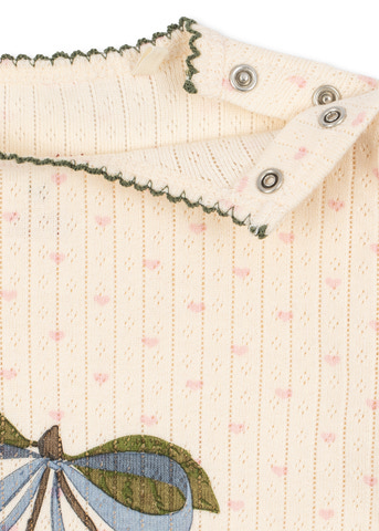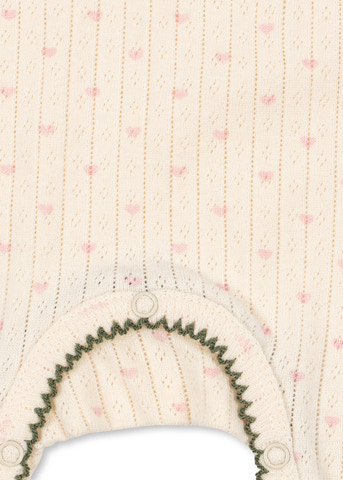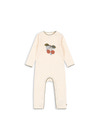 Klassisk onesie tillverkad i ventilerande ekologisk bomull. Knäppknappar längs benen för enkel påklädning.