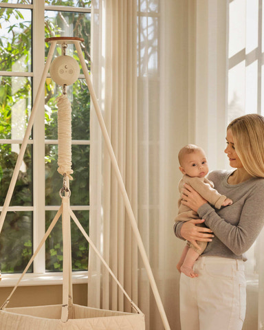 Med möjligheten att starta och använda motorn beröringsfritt via vår app kan du antingen ställa in både gunghastighet och driftstid efter önskemål, eller använda ett av våra sömnprogram som är utformade av sömnexperter med ditt barns bästa sömn i åtanke.