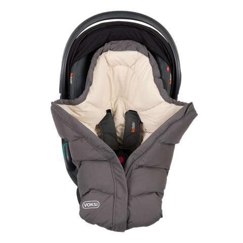 I en bilbarnstol är det viktigt att barnet är ordentligt fastspänt och att selen är korrekt fastsatt. När Voksi Move används i en bilbarnstol ger den isolering som ersätter ytterkläder. Detta gör att bilbarnstolens sele sitter närmare barnets kropp än om barnet hade isolerade kläder som täcker axlarna och överkroppen. En centrerad dragkedja med snabbkoppling framtill ger enkel åtkomst till barnet i bilbarnstolen. Den unika designen på ryggen med öppningar för selen säkerställer enkel installation och en bra passform för selen. Tryckknapp i ryggen för enkel längdjustering. När temperaturen stiger i bilen är det enkelt att öppna påsen helt så att barnet inte blir för varmt och får ventilation i bilbarnstolen.