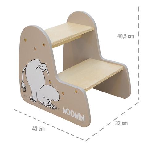 Ge ditt barns dagliga rutin en touch av magi med denna fina Muminpall. Perfekt för att nå höga platser i köket, badrummet eller sovrummet, denna robusta pall har en söt Muminfigur som ger glädje och charm till alla rum. Den neutrala beige färgen med naturliga trätrappsteg smälter in underbart med många olika inredningar, vilket gör den till ett snyggt och funktionellt tillskott till ditt hem. Muminpallen är inte bara ett praktiskt tillbehör, utan också ett utmärkt verktyg för att främja självständighet hos små barn. När de använder pallen för att nå handfat, köksbänkar eller hyllor, bygger de upp självförtroende och självständighet. Att klättra upp och ner hjälper till att utveckla grovmotorik och koordination. Dessutom garanterar den stabila designen säkerhet samtidigt som den låter barn utforska och delta i dagliga uppgifter, vilket främjar en känsla av ansvar och engagemang. Tillverkad av högkvalitativa material är denna pall byggd för att hålla, vilket garanterar hållbarhet och säkerhet för ditt barns dagliga äventyr. Viktgräns: 50 KG.