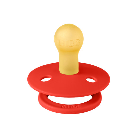 Nappen har den karakteristiska runda BIBS-skölden med tre ventilationshål och en rund BIBS-graverad ring. Den är utrustad med en rund napp av naturgummilatex, som stödjer en naturlig sugteknik.