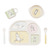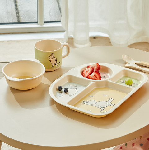 Gör måltiderna roliga och spännande med detta 5-delade Moomin-matset, dekorerat med de söta Moomin-figurerna. De mjuka färgerna och charmiga illustrationerna skapar en mysig och inbjudande atmosfär för de små. Setet har perfekt storlek för små händer och innehåller: en tallrik med fyra fack, en skål, en kopp med handtag, en sked och en gaffel. Perfekt för vardagsmåltider, mellanmål eller till och med picknickäventyr.