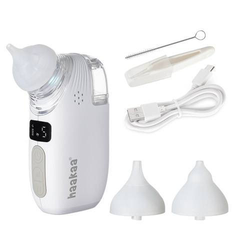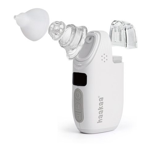 Lindra nästäppa enkelt, skonsamt och effektivt med den smarta 2-i-1-näsaspiatorn med integrerad spray från Haakaa. Den är utformad för att snabbt lösa upp och ta bort slem så att ditt barn kan andas fritt igen utan stress eller obehag. Sprayfunktionen återfuktar näsan och hjälper till att lösa upp slemmet, varefter sugedelen försiktigt tar bort det. Den mjuka spetsen i medicinsk silikon är utformad för små näsor och garanterar en bekväm upplevelse, medan de olika sugstyrkorna ger dig full kontroll.