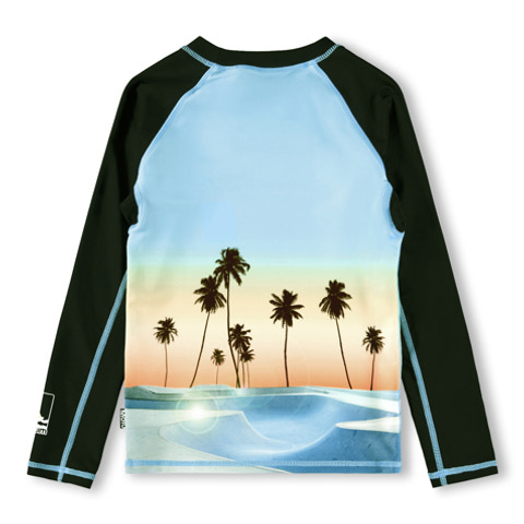 Neptune Badtröja från Molo är ett färgstarkt och funktionellt plagg för alla sommarens vattenäventyr. Med sitt unika Sunrise Skate-motiv och långa ärmar skyddar den effektivt mot solens strålar samtidigt som den ger en sportig look. Materialet består av polyester och elastan, vilket gör tröjan både mjuk, stretchig och snabbtorkande – perfekt för aktiva dagar vid stranden eller poolen. Den bekväma passformen gör att barnet kan leka och simma obehindrat, och plagget är lätt att ta på och av. Ett utmärkt val för dig som vill kombinera stil, komfort och skydd under soliga dagar.