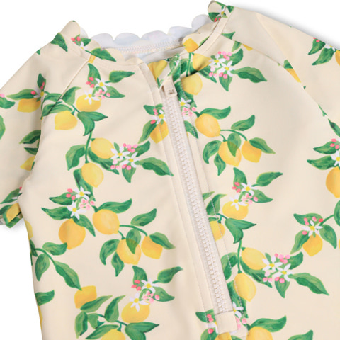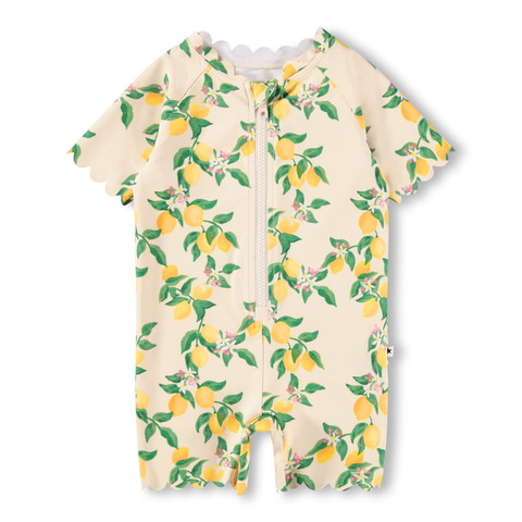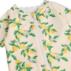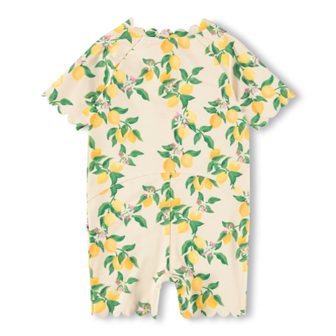 Nolu UV-dräkt från Molo är det perfekta valet för soliga dagar på stranden eller vid poolen. Dräkten har ett charmigt citronmönster och är tillverkad i ett mjukt, snabbtorkande material som känns behagligt mot huden. Med korta ärmar och ben samt en smidig dragkedja framtill blir det enkelt att byta om, även när barnet är blött. Materialet ger ett högt UV-skydd, så att ditt barn kan leka tryggt i solen. Perfekt för aktiva små som älskar vatten och utomhuslek!