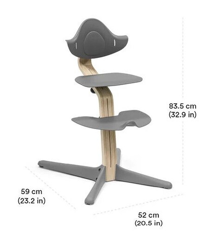 Stokke® Nomi® barnstol är tillverkad med en solid träram med stora korsformade ben/fötter som säkerställer att barnstolen står stadigt på golvet och förblir stabil om barnet trampar på fotplattan.