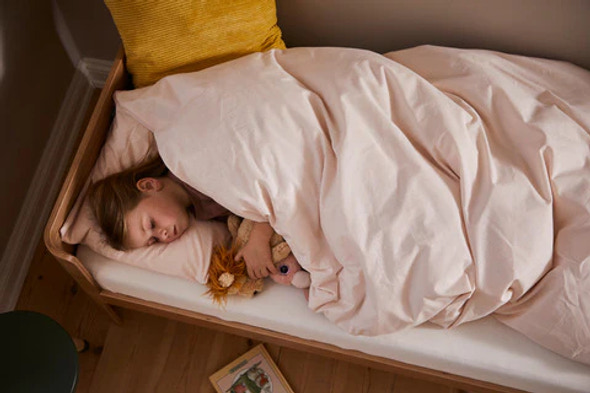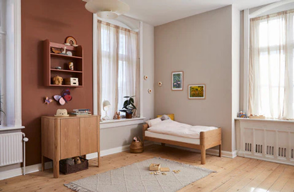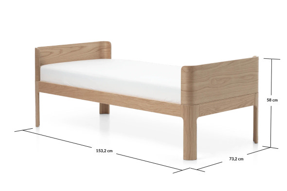Låt ditt barn sova tryggt och gott i denna juniorsäng med mjuka, rundade kanter. Sängen har ett huvudgavel och fotgavel och har i övrigt en enkel, tidlös design som skapar utrymme för lugn och eftertanke. Små, genomtänkta detaljer, såsom de fina fogarna och benens kurvatur, gör att denna juniorsäng framstår som en vänlig och välproportionerad möbel. Juniorsängen är tillverkad av FSC™-certifierat trä och ingår i FLEXA Nova-kollektionen – en serie flexibla barnmöbler designade av den prisbelönta designern Charlotte Høncke.