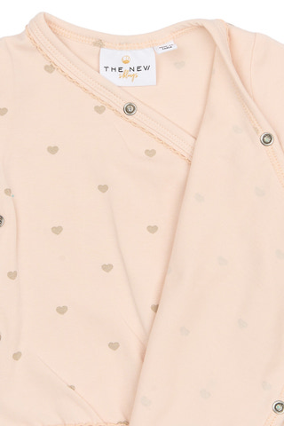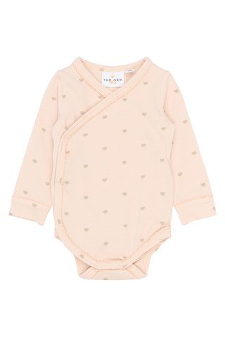Nova Långärmad Body - Silver Peony AOP från The New Siblings är en underbart mjuk body tillverkad i 95% bomull och 5% elastan, vilket ger både komfort och rörelsefrihet för ditt barn. Den praktiska omlottknäppningen framtill gör det enkelt att klä på och av även de minsta, och de tryckknapparna i grenen underlättar blöjbyten. Det fina mönstret med små hjärtan ger ett lekfullt och charmigt uttryck, samtidigt som den långärmade designen passar lika bra under kyliga dagar som till vardags. Perfekt för både nyfödda och småbarn som vill ha det bekvämt och stilfullt.