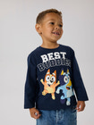 Odin Bluey-tröjan från NAME IT är en hit bland barn som älskar den roliga och äventyrliga Bluey. Tröjan är tillverkad i ett mjukt material som garanterar komfort hela dagen, oavsett om den används för lek eller avkoppling. Med ribbade kanter vid halsen, ärmarna och nederkanten har tröjan en klassisk och välsittande look som behåller sin form tvätt efter tvätt. Det färgglada Bluey-motivet på framsidan gör tröjan extra rolig och personlig, och den är lätt att matcha med jeans, byxor och kjolar. Perfekt för dagis, skolan och mysiga stunder hemma.