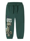 Oswald Jurassic Sweatpants från NAME IT är perfekta för små dinosauriefans! Byxorna är tillverkade i en vacker bistrogrön färg och har ett stort, coolt Jurassic World-tryck på ett ben och roliga ”dinosaurieryg”-detaljer längs sidan. Det mjuka sweatshirtmaterialet garanterar hög komfort och den justerbara dragskon i midjan gör det enkelt att anpassa passformen. Ribbade muddar och midjeband ser till att byxorna sitter på plats hela dagen, oavsett om man leker eller kopplar av. En byxa som snabbt kommer att bli en favorit i garderoben!